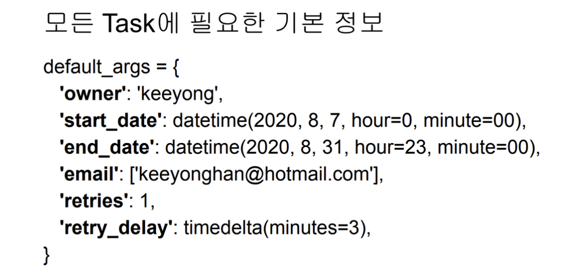 default_args = default_args # 딕셔너리로 되어있는거 가지고옴