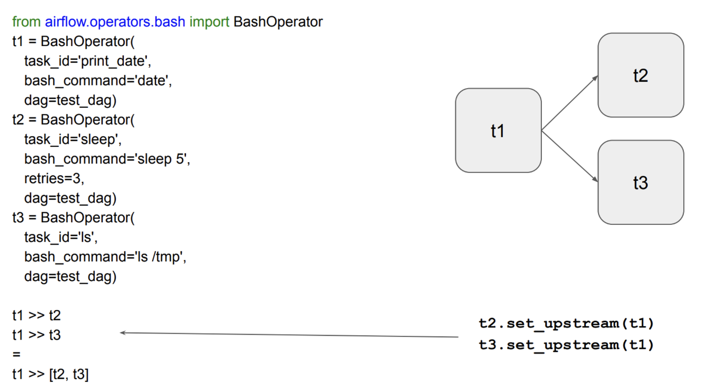 - airflow 에서 여러가지 Operator을 제공하는데 그중 하나는 ‘BashOperator’