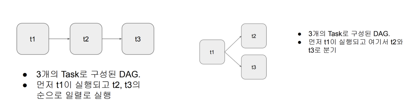 - 하나의 DAG에서는 하나 이상의 태스크로 구성된다.