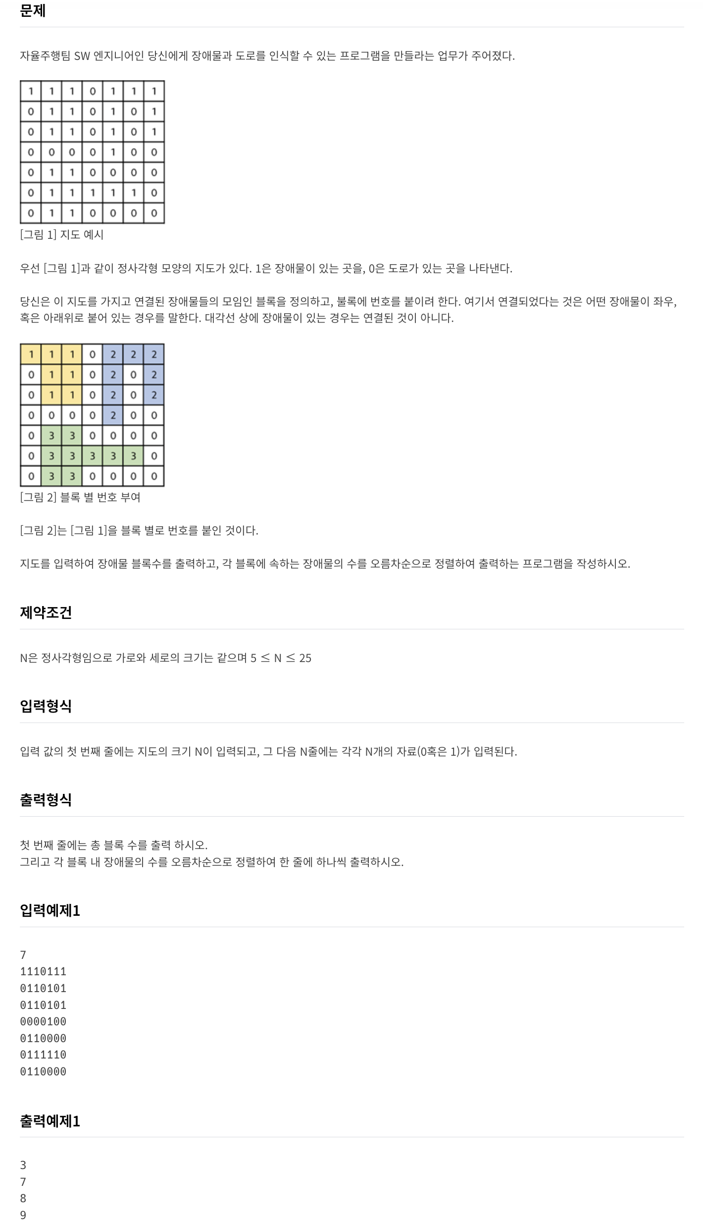 문제를 보자마자 백준문제(2667번 / 단지번호 붙이기) 에서 풀었던 문제가 떠올랐다.
