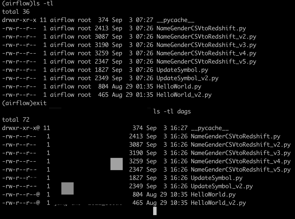 - airflow 내부에서 dags directory의 내용과 로컬 dags 저장소에 있는 내용이 서로 동일하다.