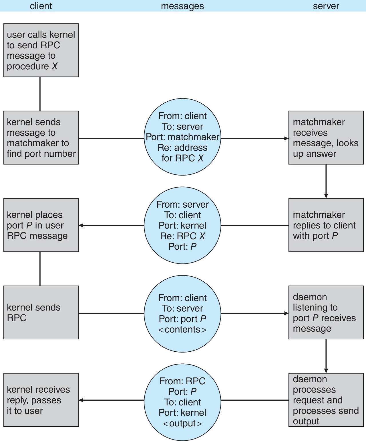 - server-side 에서의 stub 에서는 메세지를 수신하고 marshall 인자들을 언팩한다.