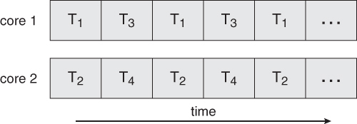 - 다중 스레드가 다중 코어 시스템에서 병렬 실행 불가능