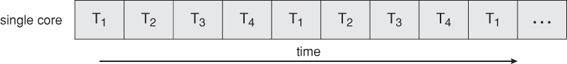 - 싱글코어 : 스레드는 시간지남에 따라 사이에 끼워넣기(interleaved) 된다. 병행성(concurrency)의 정수이기도 하다.
