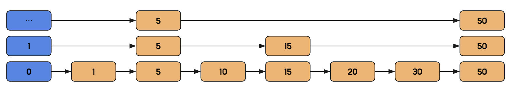 결론적으로, skiplist로 연결리스트를 사용하는 단점중 하나인 인덱싱에 걸리는 시간을 대폭 낮춰주는 역할을 해준다.