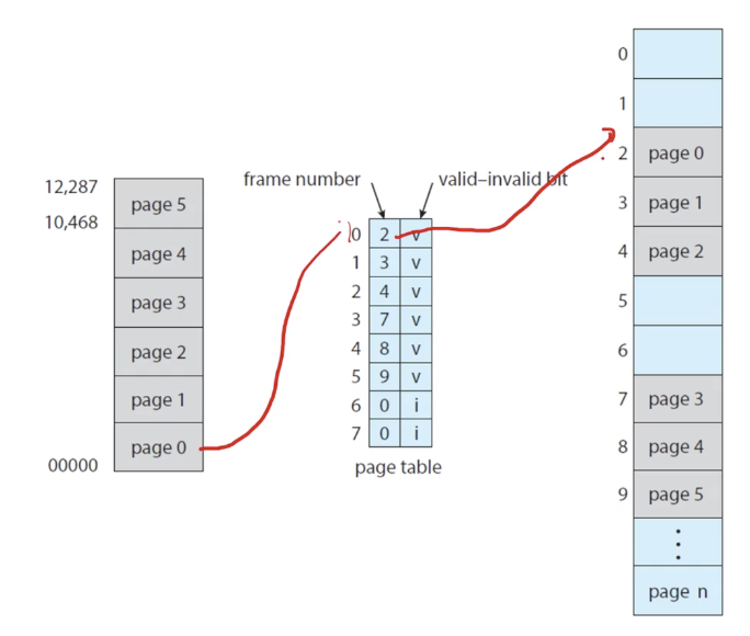 페이징이 들어올 때에 대한 valid-invalid 를 검증할 수 있는 비트를 추가해서 유효성을 검증한다.