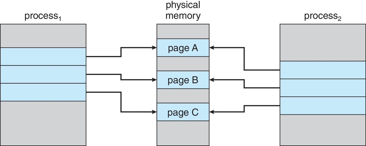 - 'shared memory' 처럼 공유되는 메모리가 필요하다고 할 때 접근이 편해진다. 페이지를 공유함으로서 가능해지는 부분이다.