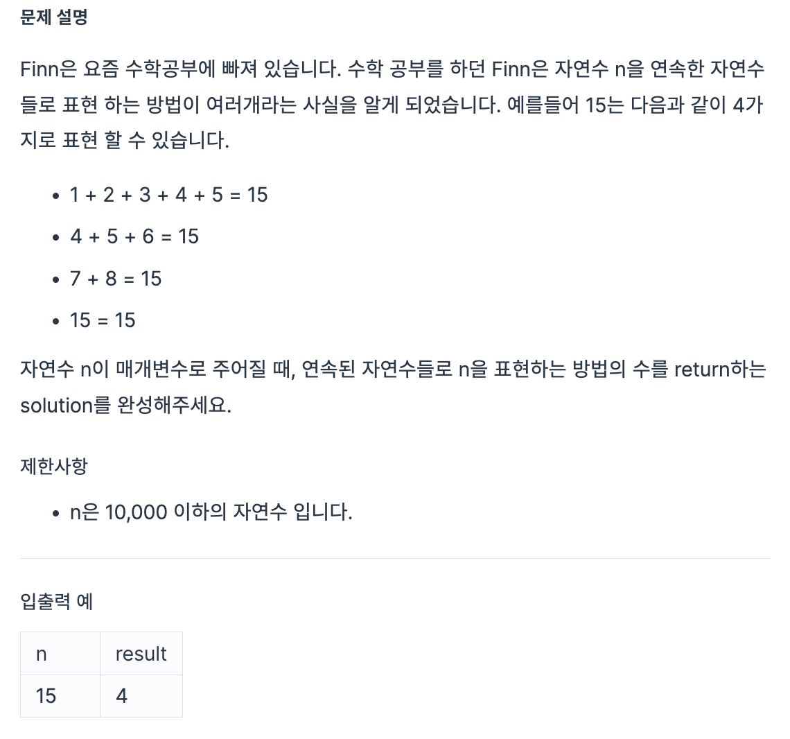 브루트포스 문제인데 문제를 이상하게 읽었다. 연속한 자연수라길래 1증분, 2증분… 등을 고려해야하는 줄 알았다.