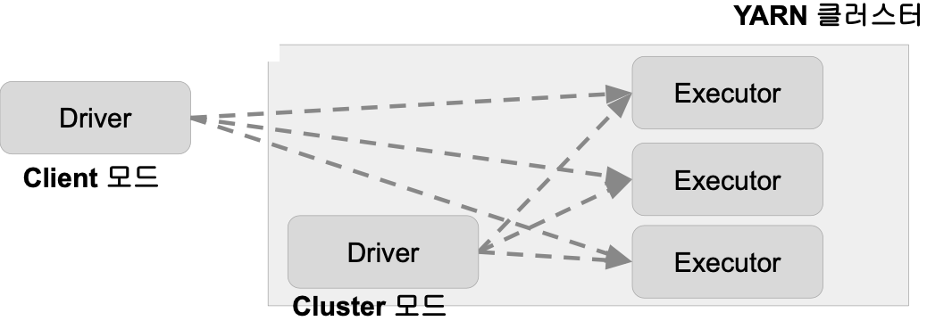 - YARN : 클라이언트 모드, 클러스터 모드