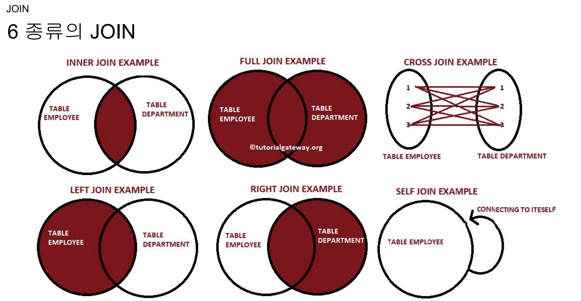 - UNION (합집합): 여러개의 테이블들이나 SELECT 결과를 하나의 결과로 합쳐줌