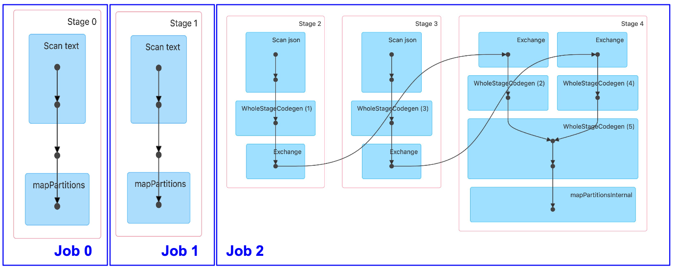 이 코드는 몇 개의 Job을 만들어 낼까? : 3개의 job이 생성됨(df_large, df_small, df_large/df_small shuffling and merge)