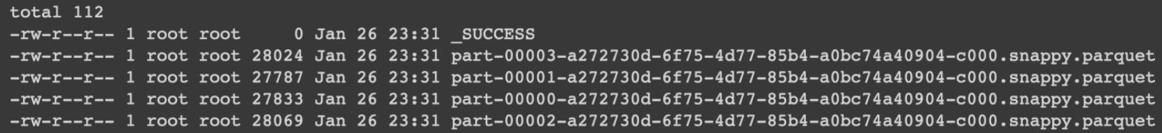 - snappy 로 압축한 것은 Splittable한 압축방식이다. 압축이 되었어도 블럭단위로 나눌 수 있다는 장점이 있다.
