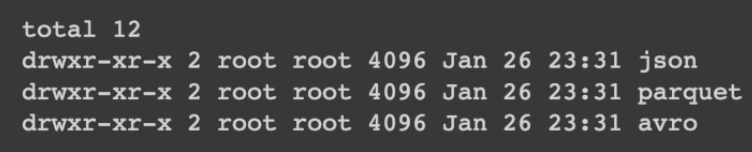 #파티션 없는(하나의 블럭)형태 - avro type으로 저장