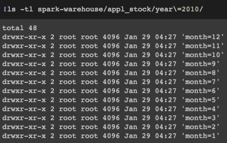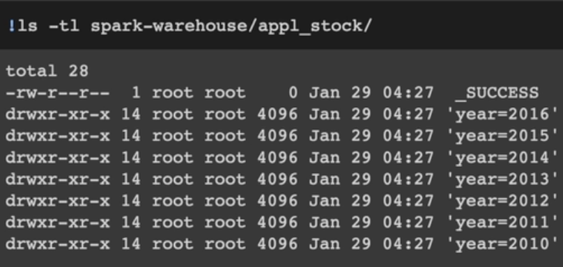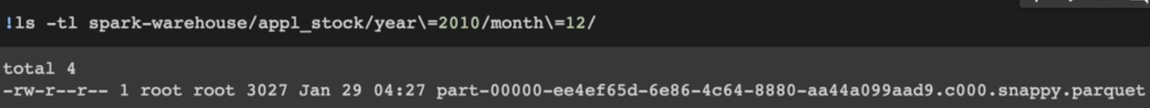 df.write.partitionBy("year", "month").saveAsTable("appl_stock")
