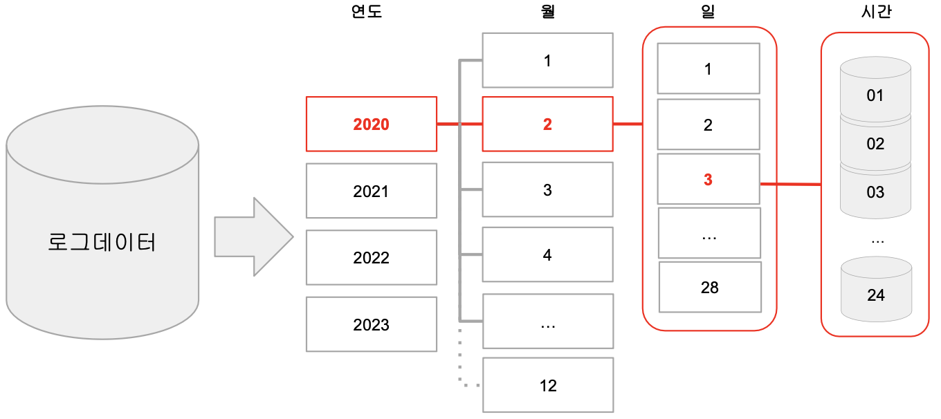 - 데이터 자체를 연도-월-일의 폴더 구조로 저장