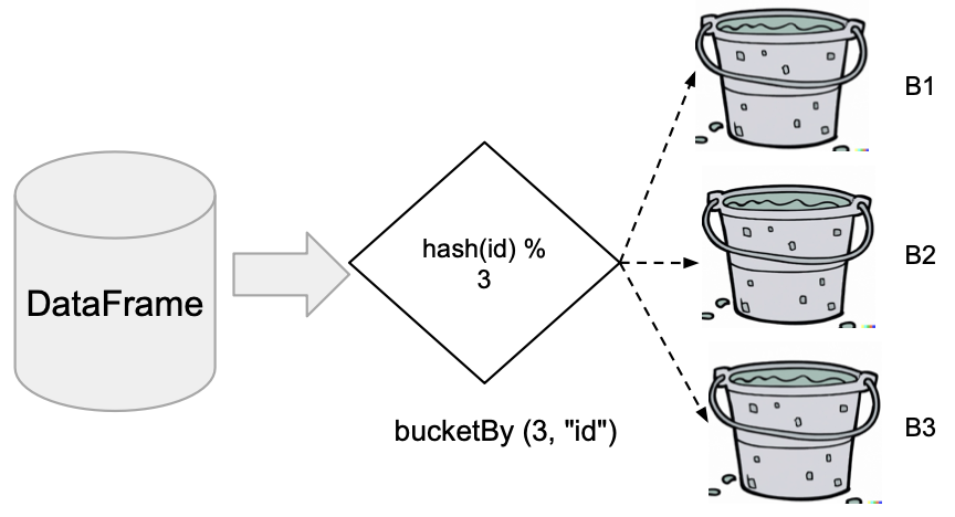 - DataFrameWriter의 bucketBy 함수 사용